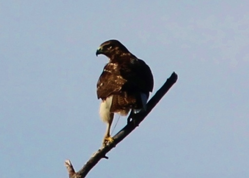 Hopefully one of our more knowledgable birders will know. Looking at the tail feathers I'm going with hawk but I'll be back to see if someone knows for sure. :)